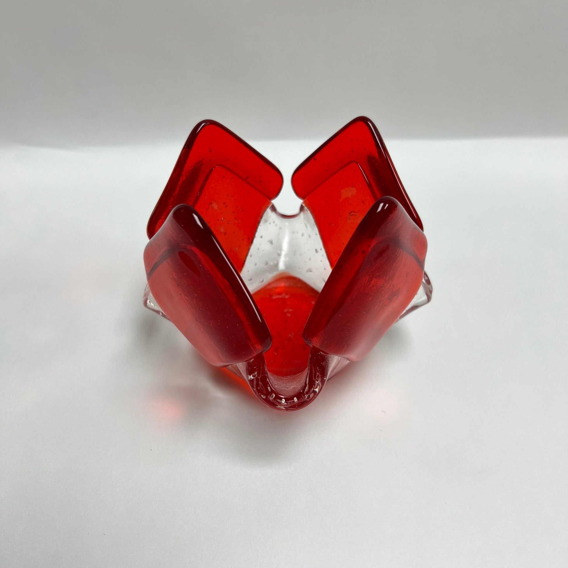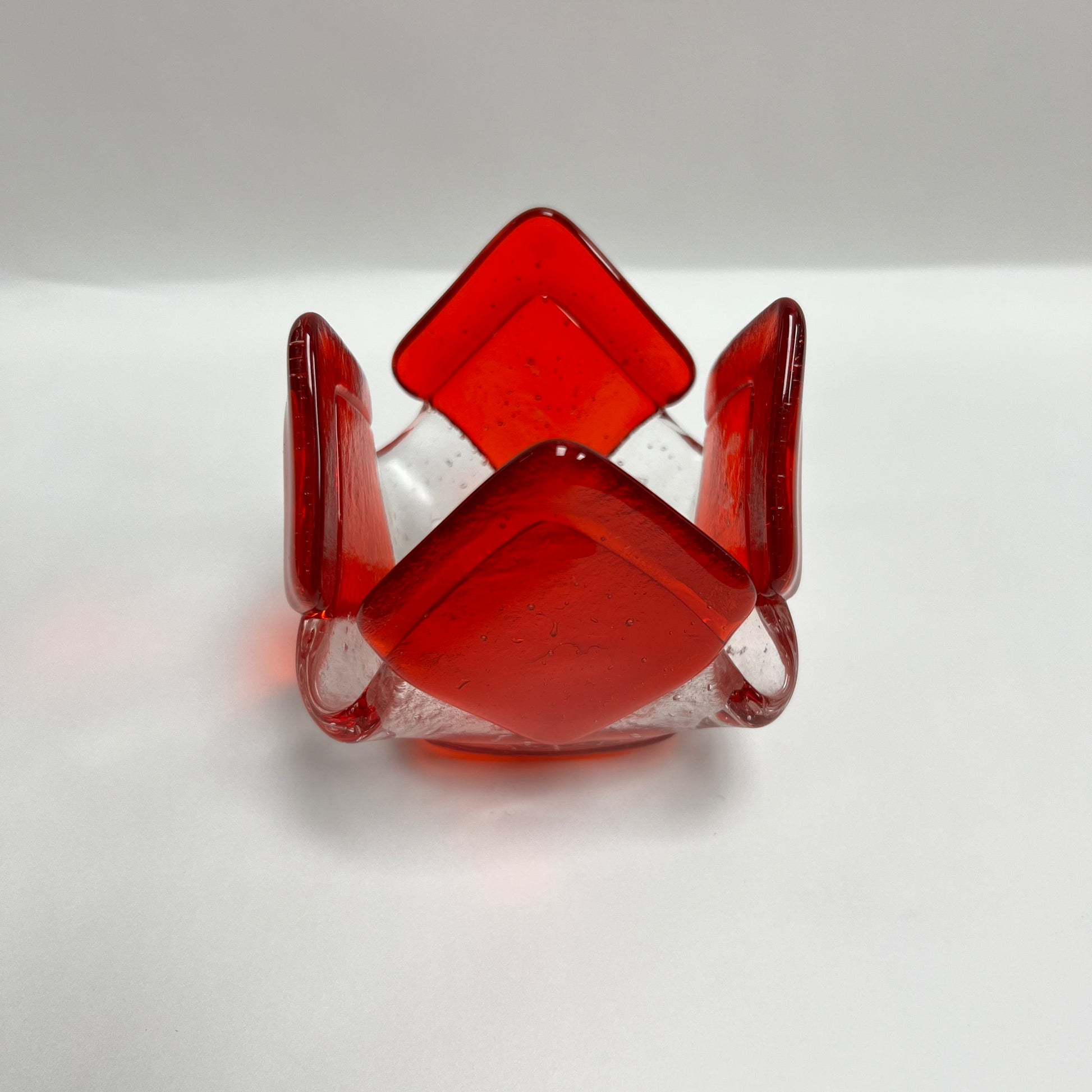 Our exclusive candleholder adorned with beautiful transparent orange glass. This exquisite piece of home decor is sure to captivate with its distinct and eye-catching design.