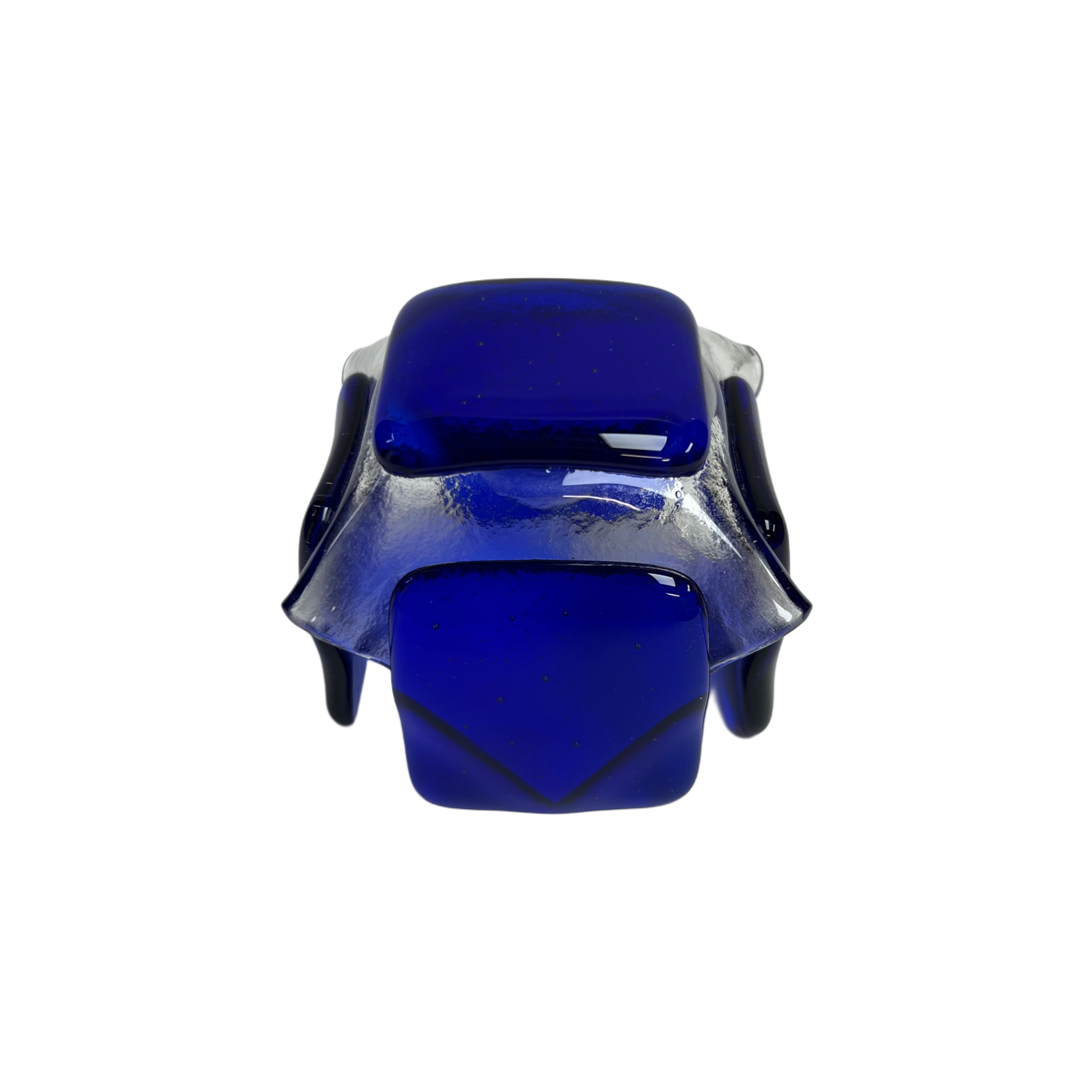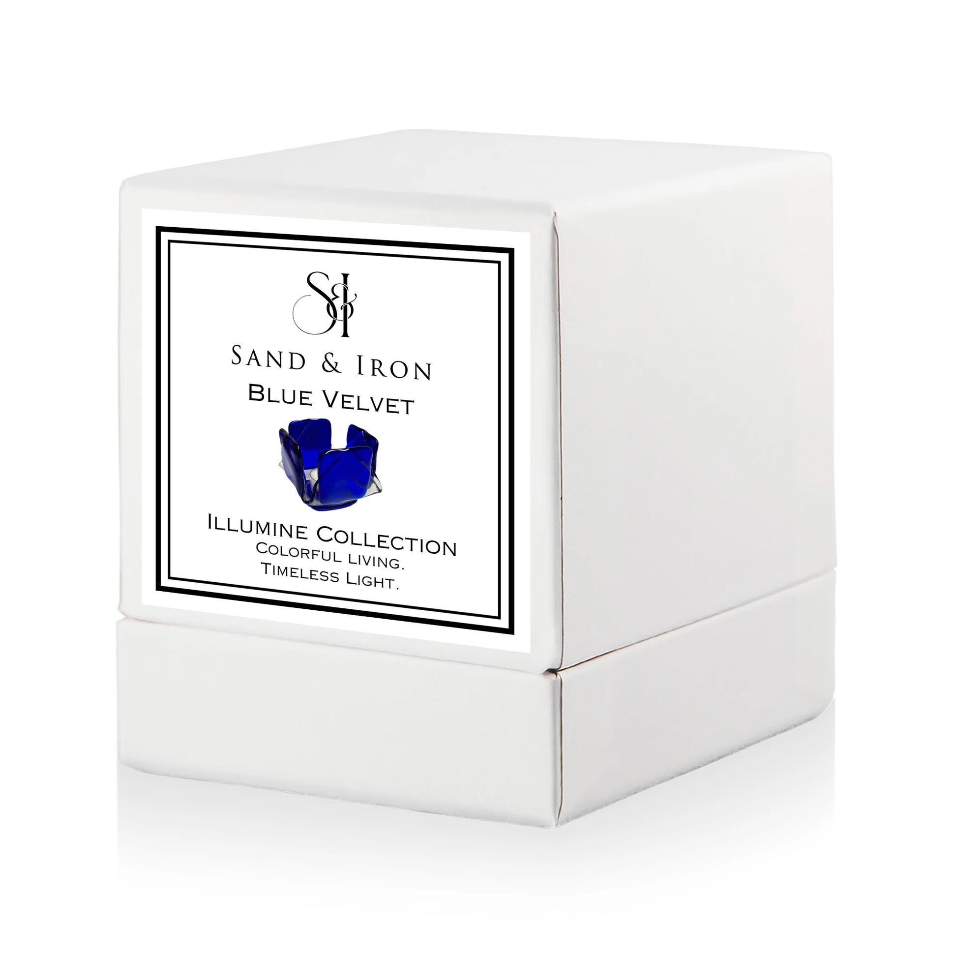 Our exclusive candleholder adorned with beautiful transparent blue glass. This exquisite piece of home decor is sure to captivate with its distinct and eye-catching design.