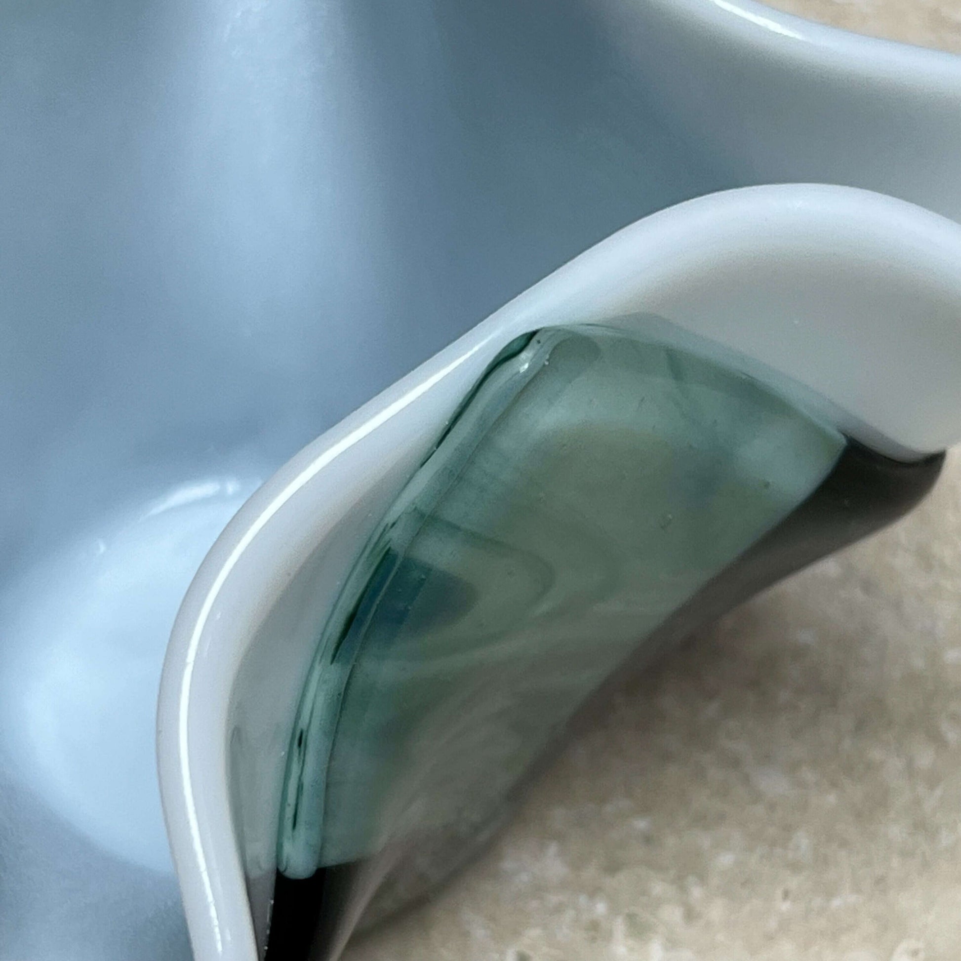 Carefully molded and subjected to three firing cycles over a total of 30 hours in a glass kiln to achieve its rich, vibrant colors. Due to the nature of kiln-forming, though the overall shape remains constant, slight differences happen. Accommodates up to a 2" x 4" pillar candle. Handcrafted in the US.