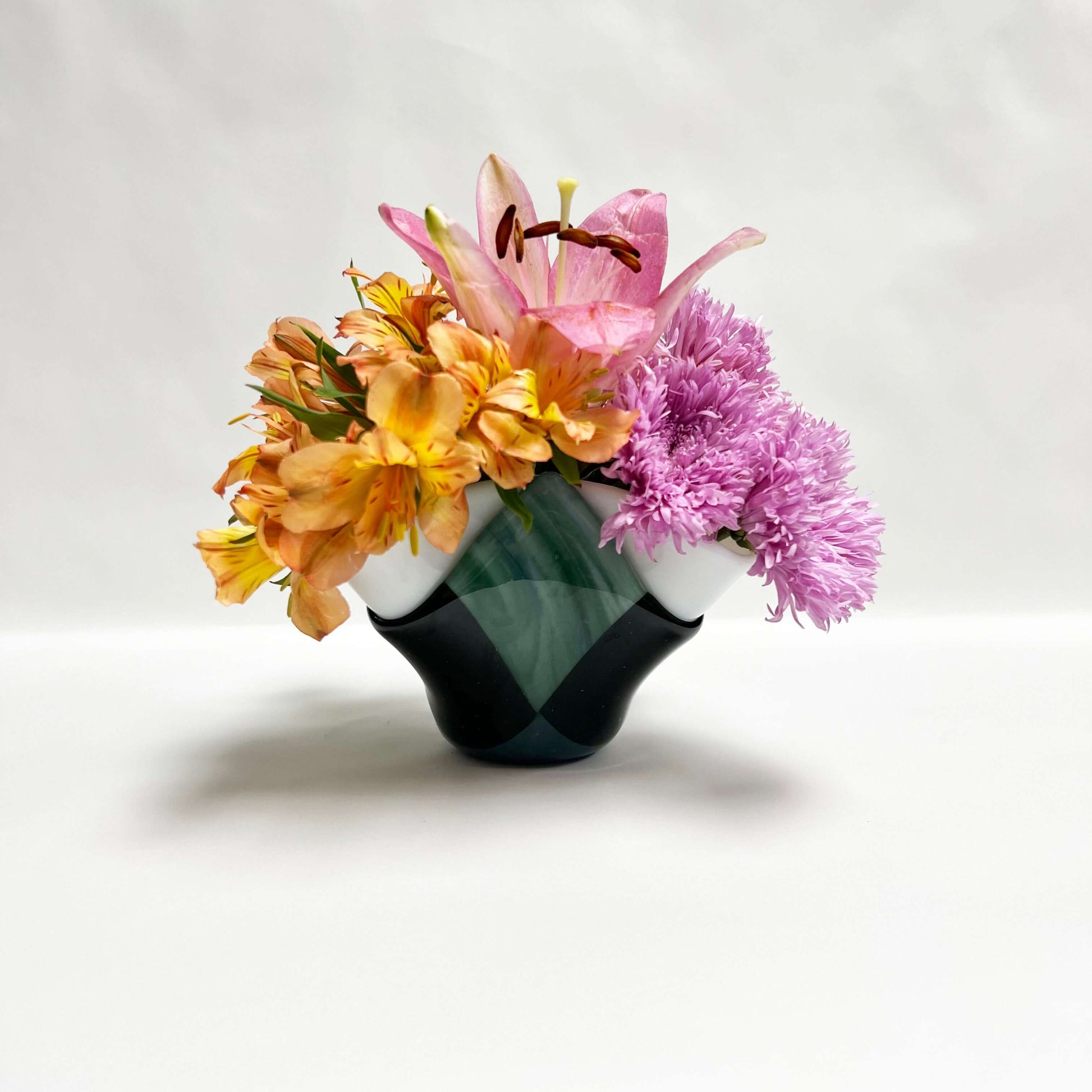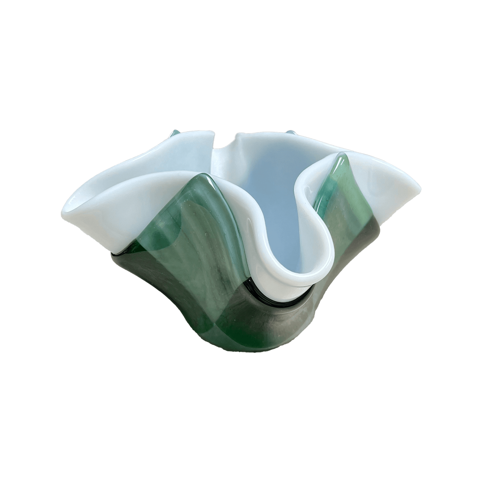 Our exclusive home accessory in a checkerboard pattern with a mix of aventurine green, kelly green and white opalescent. This exquisite piece of home decor are sure to captivate with their distinct and eye-catching design.