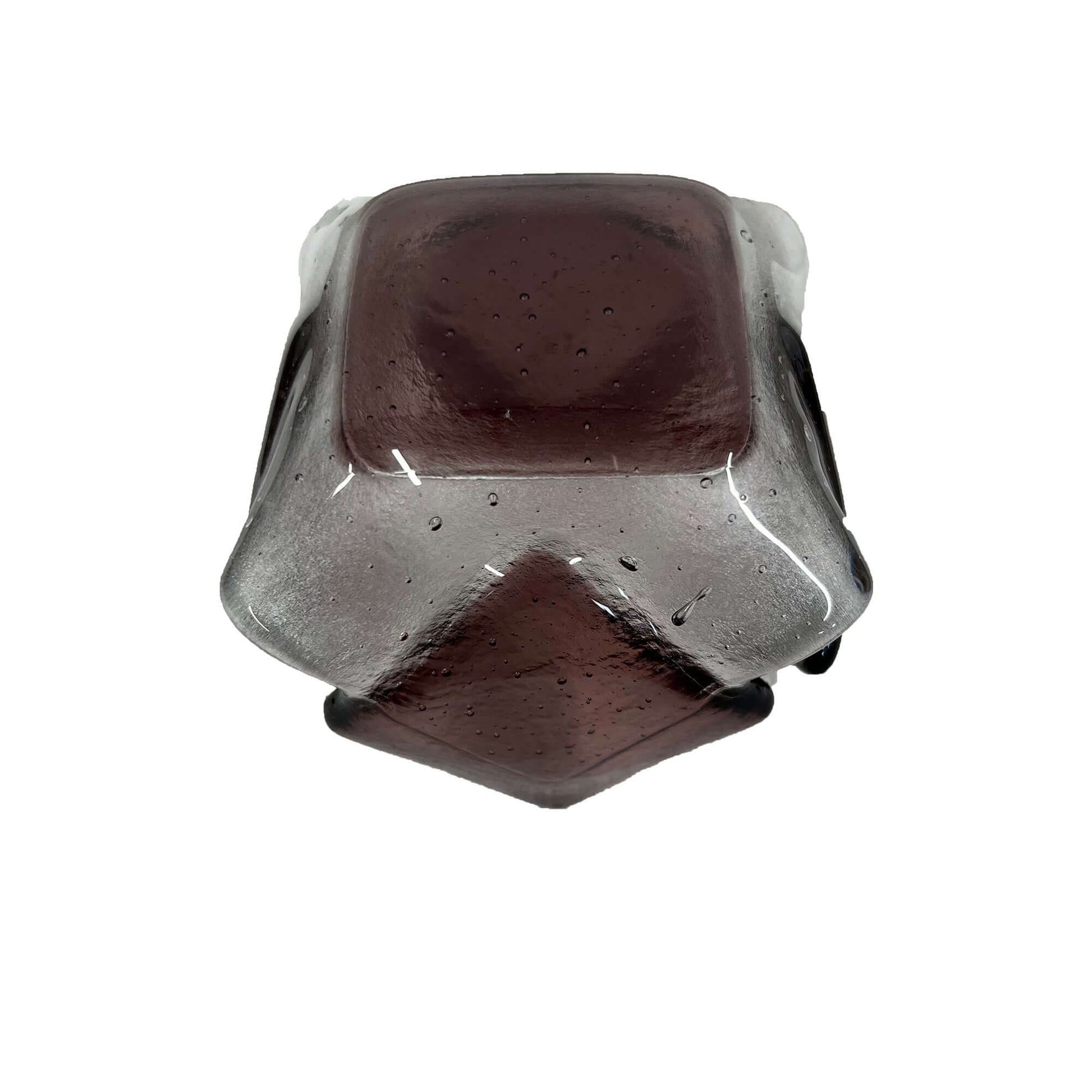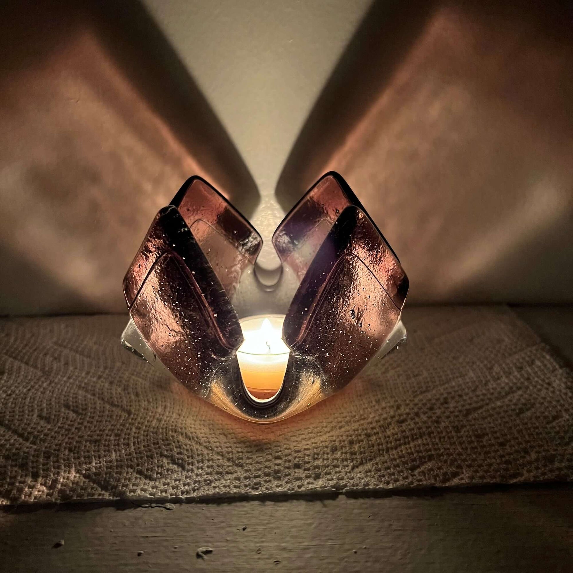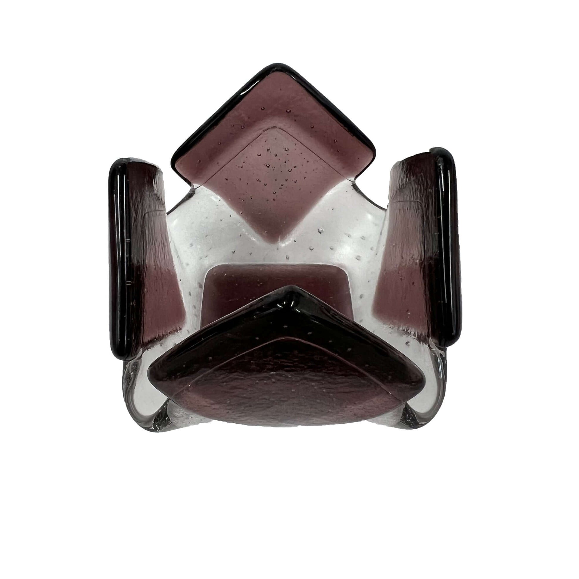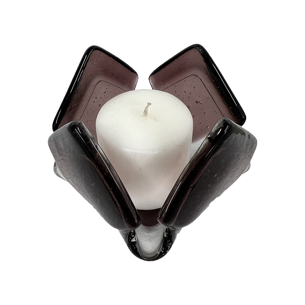 Our exclusive candleholder adorned with beautiful transparent violet glass. This exquisite piece of home decor is sure to captivate with its distinct and eye-catching design.