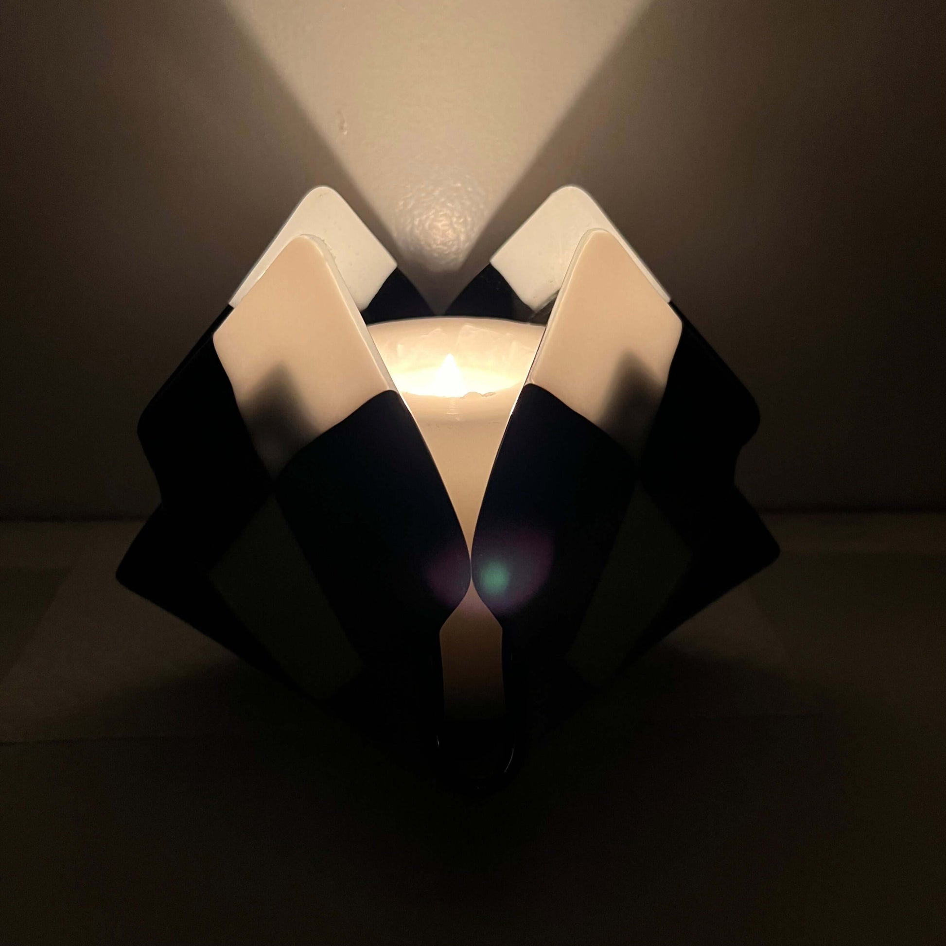 Carefully molded and subjected to several firing cycles over a total of 30 hours in a glass kiln to achieve its rich, vibrant colors. Due to the variations in the glass, no two are ever the same. Measures 6.5" x 7" x 7". Accommodates up to a 3" x 4" pillar candle.
