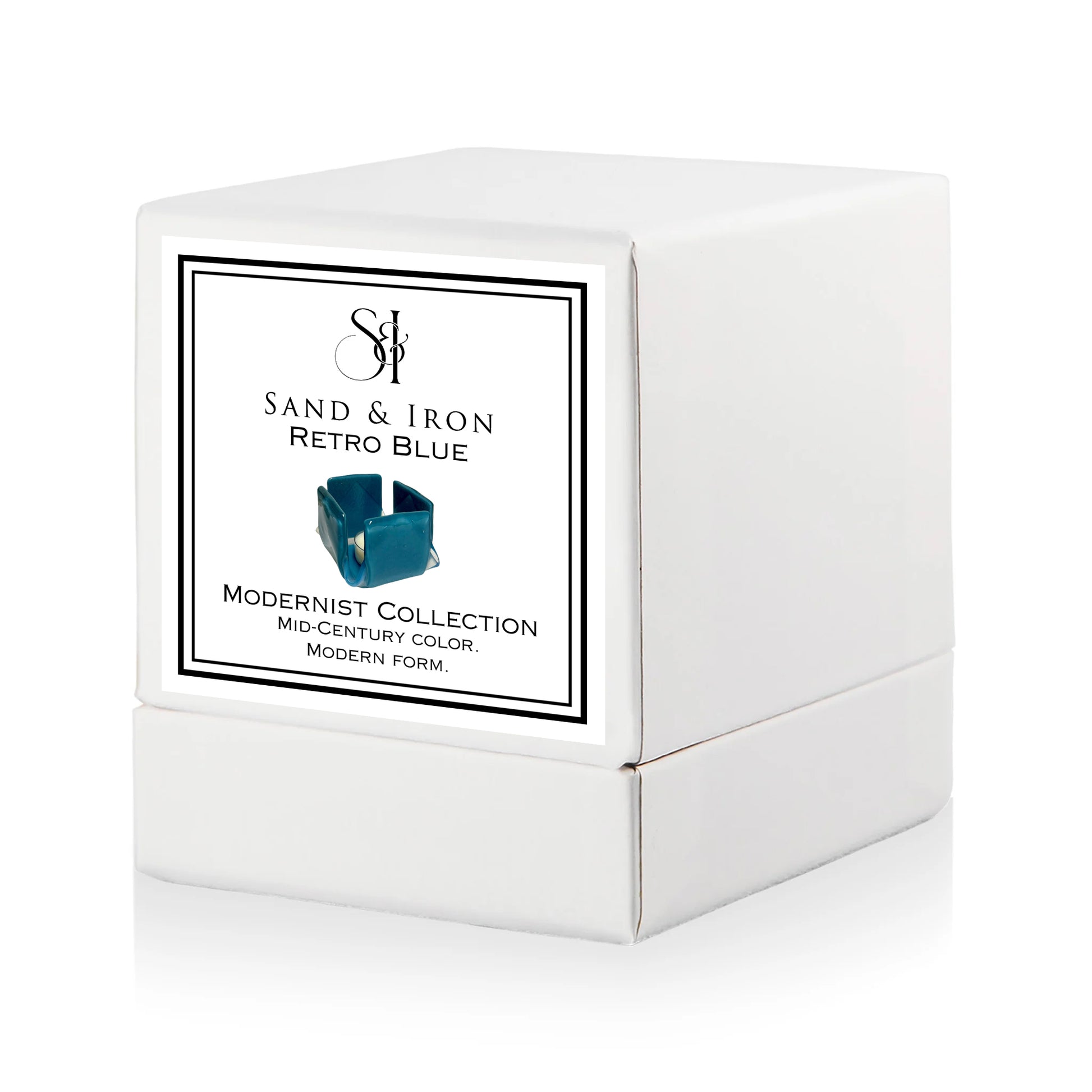 Our exclusive candleholder featuring glass in one of the timeless colors of Mid-Century Modern: Dusty Blue. These exquisite pieces of home decor are sure to captivate with their distinct and eye-catching design.
