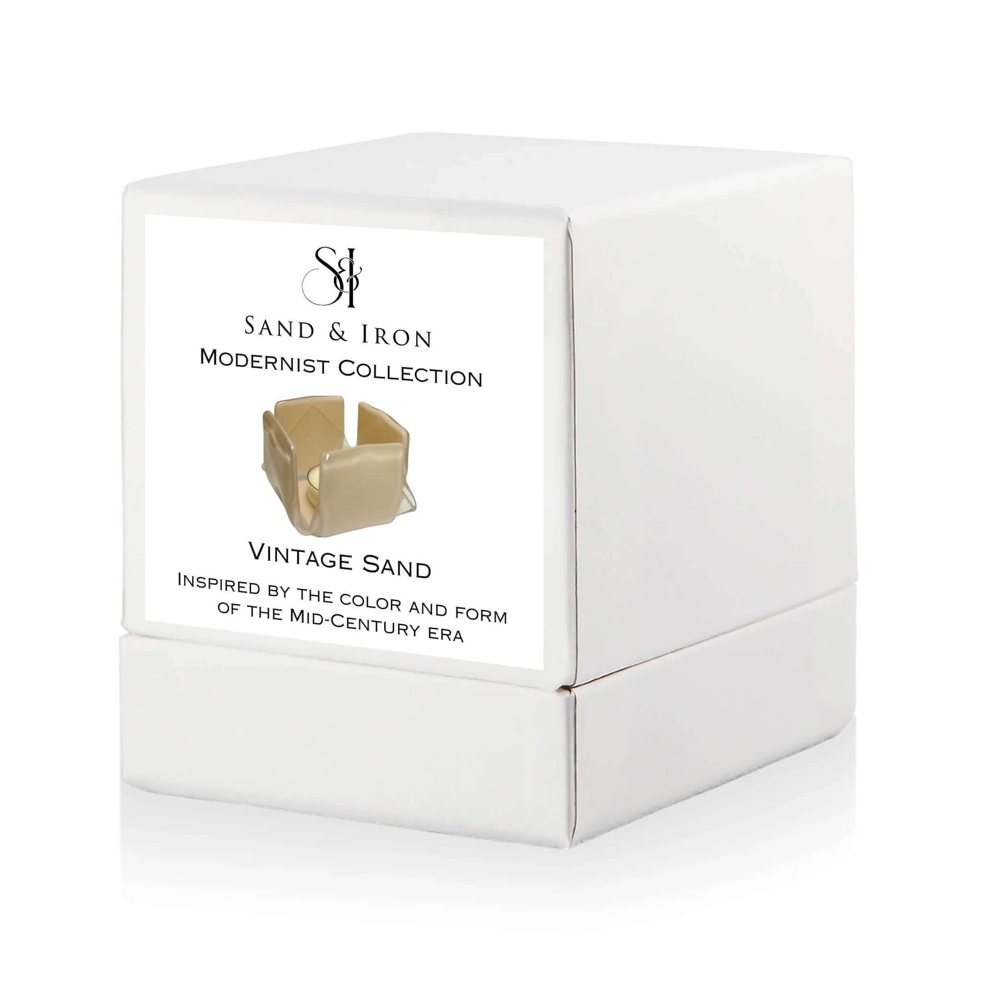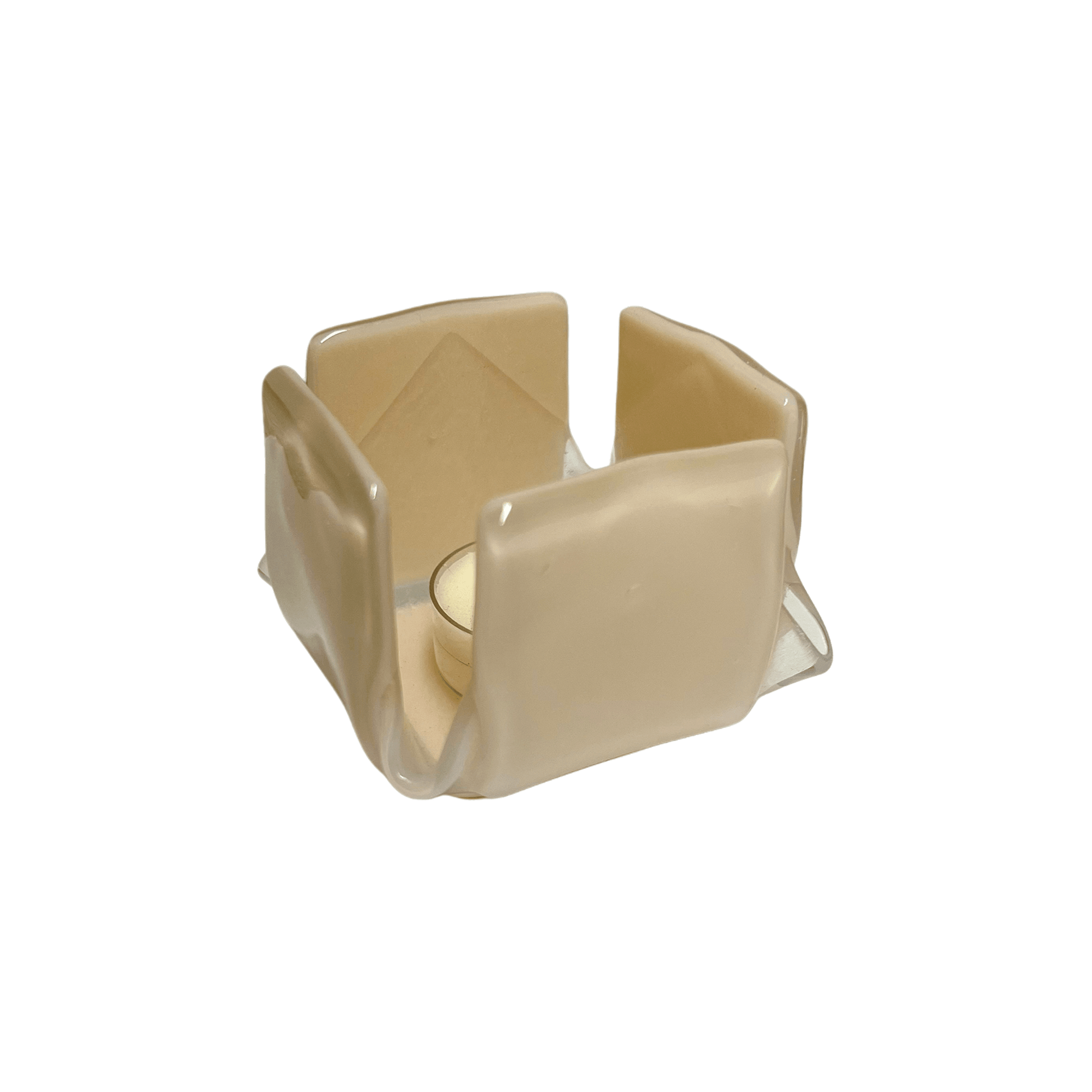Our exclusive candleholder featuring glass in one of the timeless colors of Mid-Century Modern: Almond. These exquisite pieces of home decor are sure to captivate with their distinct and eye-catching design.